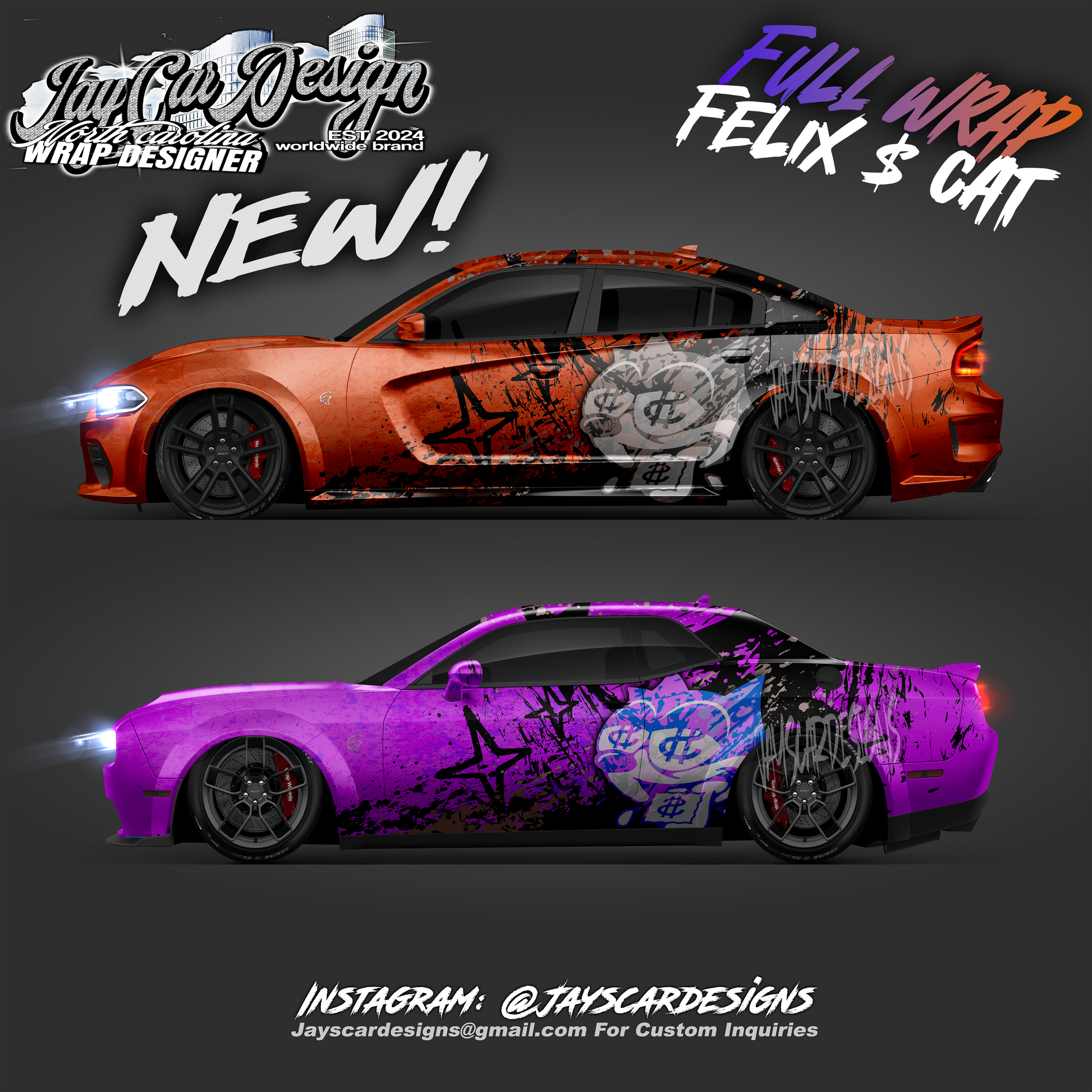 Felix $ Cat by jays car designs. This design is universal to any make and model. This full wrap is made from a high cast air release film for those complex curves.
